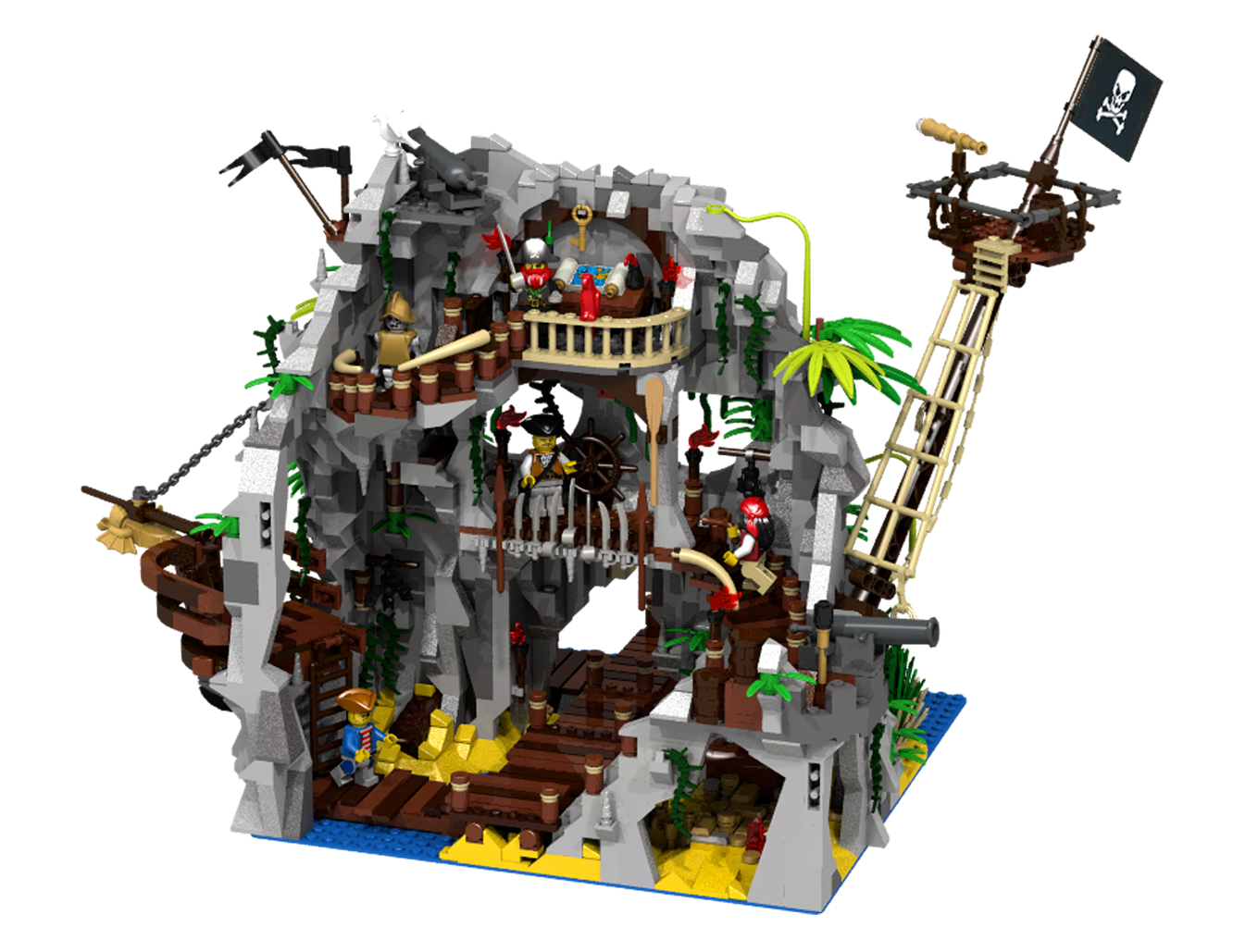 glenbricker Posted October 21, 2014 Posted October 21, 2014 Hey everybody, DarthKy and I worked together to make this high end non-ship set concept for LEGO Ideas. (Please note this submission has expired) We also tried to re-imagine Redbeard, Anne, Rummy, and "Steve" from the classic LEGO Sets. We certainly hope you will check it out. Skull Cove: Redbeard’s Return. Captain Roger Redbeard once terrified the seas with his crew aboard the The Black Seas Barracuda but he has not been seen on the high seas for over a decade. Nobody knows exactly what happened to him, many assumed he finally met a bitter end, perhaps finally caught by the Imperials...some claim he retired and lives quietly on his untold riches. His closest friends and allies however know the truth. Redbeard, surrounded by his loyal crew, still rules the great pirate fleet, a shadow empire, from the security of his stronghold, Skull Cove. This set seeks to create a top of the line pirate stronghold operated by a cadre of pirates inspired by classic LEGO pirates. The re-imagined pirates includes the classic figures: Captain Roger Redbeard, Rummy, Anne, and “Steve.” The Crew Captain Rodger Redbeard. In the passing years the Captain's beard has grown and streaks of white have crept into it. He may not be as spry as he once was, but he is as cunning and quick witted as ever, coordinating strikes against the merchant lanes while continuing to foil the Imperials. First Mate Rummy. Rummy has long been Redbeard's right hand man. Now he operates the ingenious communication network that keeps Redbeard's pirate armada working in concert. Rummy is also a legendary spotter and look out. He can count the number of cannons on a ship before most of the crew can even see its sails. Anne. Anne has served as Redbeards Quartermaster, leading countless boarding actions upon ships beset by the Black Seas Barracuda. She is an expert marksman and sword fighter, equally at home on the deck or in the ropes. "Steve" Steve is a bit of a mysterious wild card, coming and going as he pleases. The crew is not even certain if "Steve" is his real name. His unequaled skill as an artillerist however has earned him a permanent opening as the master gunner in Redbeard's ranks. On many occasions the astounding accuracy of his cannons has spelled the difference between victory and defeat. Note: This project has expired so voting is no longer available. Quote
