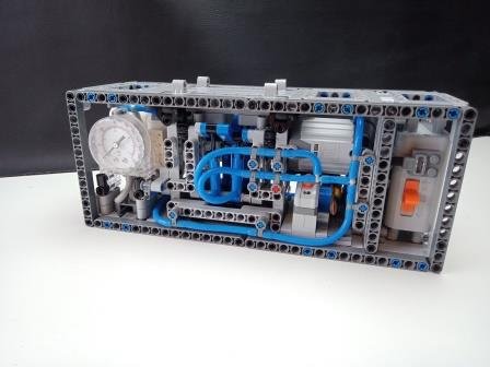 HRU_Bricks Posted February 17, 2019 Posted February 17, 2019 @Lego_GBC_NL There is 2 cylinders in the build behind the gauge (see picture below...I need to get a Fliker account...). The cylinders help with spikes of usage however the compressor has to re-fill the gas that has been consumed and continue to supply the module/build. The ball cleaner will need at least one cylinder to provide volume for high use moments of operation due to supply line restrictions. With any pneumatic build it is good practice to include one as close to the valves as possible (within the module you have built). @Juroen The 48mm cylinders will consume a lot of air. I do agree with the cheating thing... for me it is I either build 4 compressors to get it to work well or I put that funding into other builds. I also do not believe that the compressor cylinders do well when running for long periods of time. The key with my compressor is that there is a central drive shaft that drives the compressor cylinders from both sides there by lessening the torsion effect on the drive assembly. Let me know when your building yours and I will send you the LLD Quote