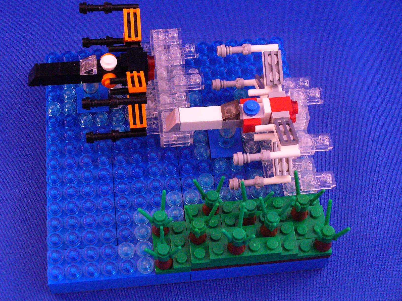 Tomsche Posted May 18, 2016 Posted May 18, 2016 For me, the most impressive moment of The Force Awakens was when the Resistance arrived to help our heroes against the First Order, their X-Wings zooming close over the water, throwing up some serious spray. A small vignette I`ve build for Mechelen Speelstad the coming weekend, this is a moc with a couple of firsts for me. You see, not only is it my first ever effort to use "forced perspective", it`s also my very first Star Wars moc I actually ever build. I`m more of a Trekkie you see, so yeah, with that license being at Mega Bloks I doubt we`ll be seeing sets of those soon. Well, at Lego at least, I`m definitly shopping the MBs when they come out this fall. The fighters used in this build are on the one hand a small set we received at the Happy Reunion 2016 event end of january this year, while the other is the one that came with the Star Wars magazine, though it did get a heap of modification. Grilles on the wings, cannons and wings turned otherwise, those kind of small things to make them look as two fighters from the same bread. All in all, if seen from the side the forced perspective worked out okay for a first time, and I`m quite happy about the size of the spray as to not become to dominating in the build. I hope you liked it, and see you around! Quote