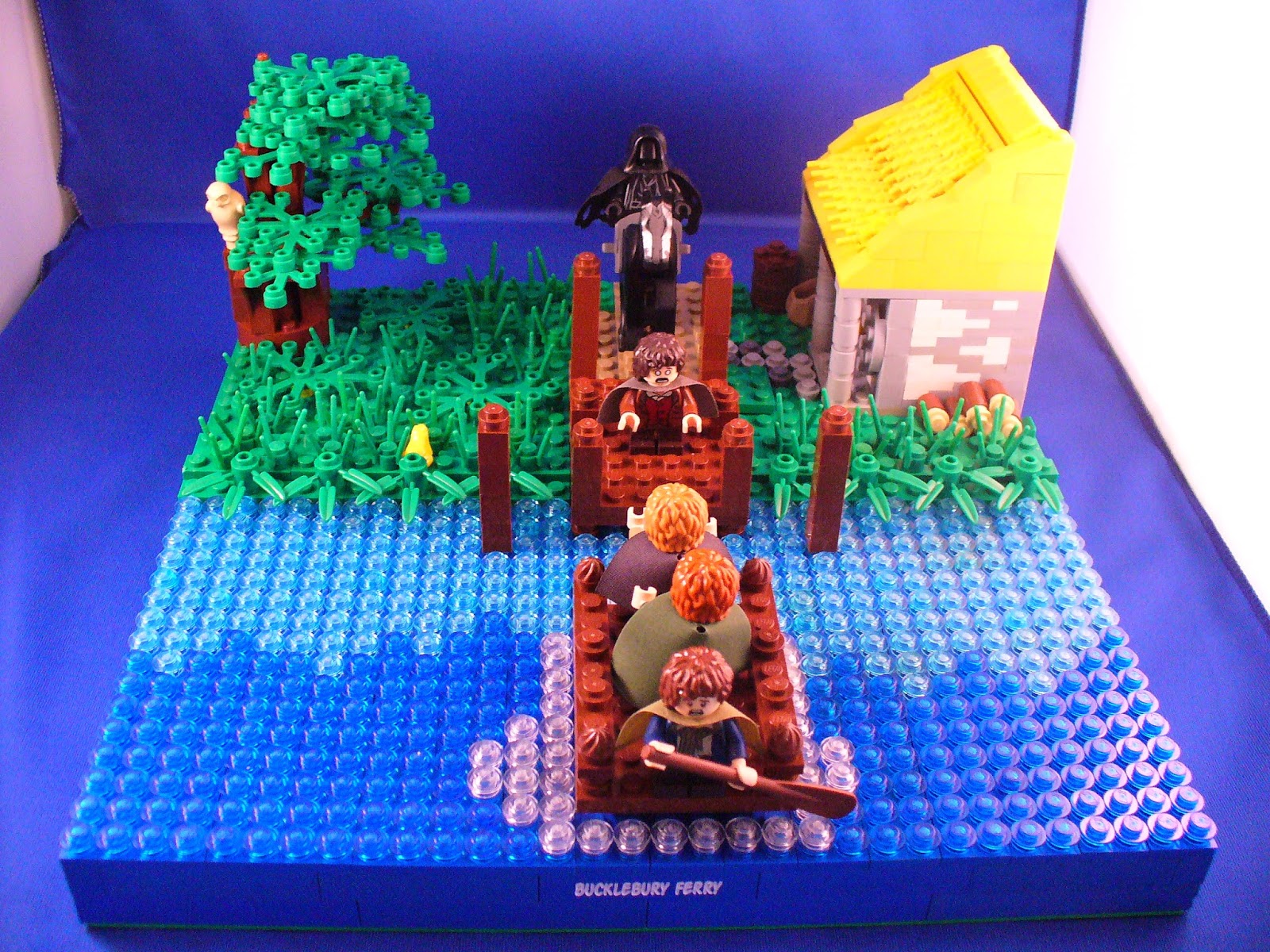 Tomsche Posted December 21, 2016 Posted December 21, 2016 Well, I had some more progress on this MOC then I planned, resulting in the first planned moc for 2017 already in 2016 with a week to spare. Bucklebury Ferry is an early scene in the The Fellowship of the Ring, when our four brave Hobbits have to flee for one of the Black Riders as they set out from The Shire on the road to Bree, where Frodo is expected to meet Gandalf. In the movies, this results in them arriving immediatly in Bree, but in the books this starts of an adventure that had almost finished the whole tale. The Hobbits enter the Old Forest, where they are captured by the vicious tree Old Man Willow, and are subsequently freed by Tom Bombadil and taken to his house (two builds I got on my "planned list" in the future). They set out again and get captured in the Barrow Downs (something I already build, check my Middle Earth tab on my blog) once more for merry old Tom to intervene and then travelling on to Bree at last. Yes, the movie had several big things cut from it ;-) I build the plate with the water technique I've been using for years now, using dark, light and clear transparent pieces for giving depth to the water. The Frodo was the one from the Shelob set, as his white pupils are great to represent the terror on his face as he needs to jump to the small ferry taking off to escape the Black Rider, who has to reign in his horse to prevent crashing in the water. For the stones in the house's side, I used some really used parts I had lying around. The bite marks in those little pieces made excellent weathered bricks for the wall. The `attached hands` technique was used for the roof, while a small round door was added for the Hobbit house that stood next to the ferry. I hope you like this build, and so slowly and steadily my Middle Earth project gets further under way. Quote