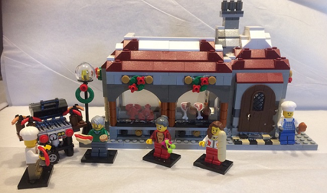Kristin W Posted January 6, 2017 Posted January 6, 2017 (edited) I've followed this contest for several years looking for ideas & techniques to spark my imagination to expand my own winter village. Since I was a little girl I had wanted a winter village display like my Great Uncle Len used to put out each year. Finally, in 2009 Lego provided the perfect avenue for the start of my very own winter village. A tradition stated with my son and I building those first buildings together and continued now by expanding the village to represent our most treasured holiday and family memories. My entry for the contest was built a couple of years ago to represent a butcher shop I have visited on annual Black Friday shopping trips north of the border to Oakville/Toronto Canada with my parents. Each year we would skip the madness in the States and head north to hit a couple of traditional malls in greater Toronto and then visit the village of Oakville. Immediately upon arrival my father would make a beeline to the butcher shop on the corner of Lakeshore Drive to get a freshly grilled sausage from the vendor right outside the butcher shop where windows displayed fresh meat & seafood. We visited this shop again in November 2016 and sure enough my father grabbed one of those wonderful smelling sausages while my mother and I hit a couple of bakeries and other shops. I had never considered entering any contests or posting here because I am just amazed at the creative and detailed builds that are posted but decided to enter this particular building this year in tribute to my dad who passed away shortly after we made that visit in November 2016. Edited January 7, 2017 by Kristin W New Picture Quote