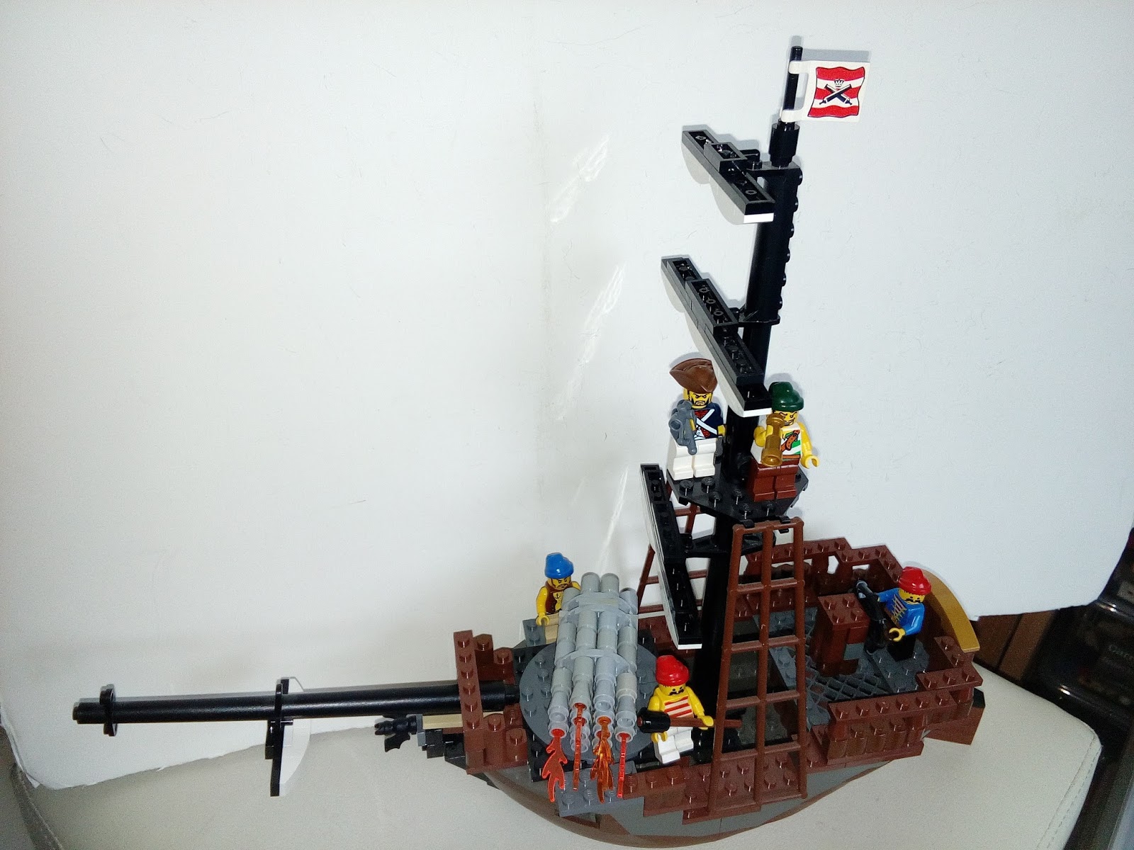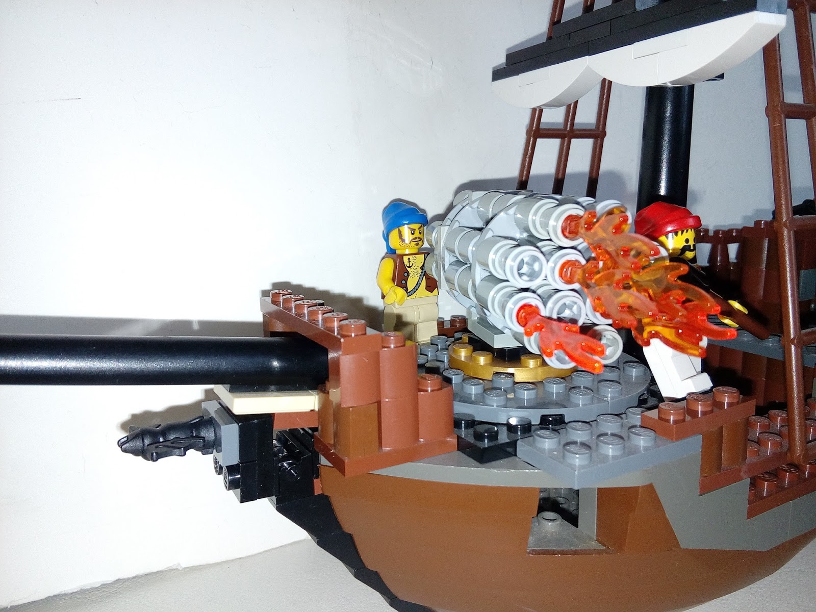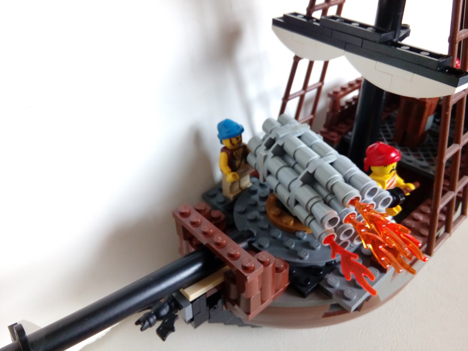 Tomsche Posted March 6, 2017 Posted March 6, 2017 It's been a while (well, from BM-Antwerp) that I got my "engines fired up" to immerse myself into BoBS fully again, but to restart the building I went to grab one of the MCRA captures I still had drydocked and build. The Symphony of Destruction was captured almost a year ago, and with such a lovely name, I just wanted to do something special with her... build an Organ gun onto her deck as a sort of experimental coastal defender vessel. "Sir, we are ready for the field test" "Good, good... let me check the coordinates, in case we don`t bombard a peasants field or something..." captain Babcull answered. "It seems that we are indeed at the right location, prepare the Symphony!" The Symphony. A nickname lovingly given to an organ gun that has been build onto the deck of the captured pirate vessel Symphony of Destruction. The idea the engineers came up with, was to use the small Armed Sloop as a mobile platform to increase the coastal defences around Quinnsville. With privateers and pirates growing bolder the past months, mayor Smaugton had decreed that the whole side of Cocovia that fell under his governance needed to be shored up and become an iron wall. To captain Babcull, the whole device looked hideous, and tilted the vessel to the fore. She wouldn`t be very swift or manoeuvrable, and setting out in high tides would be asking for disaster. But if she would be anchored in the calmer waters of the bay, she might prove to be a hefty deterrent to anyone trying to enter the harbour unauthorised. "Guncrew... at the ready! Aiiiim, aaaaand UNLEASH HELL!!!!" Quote
