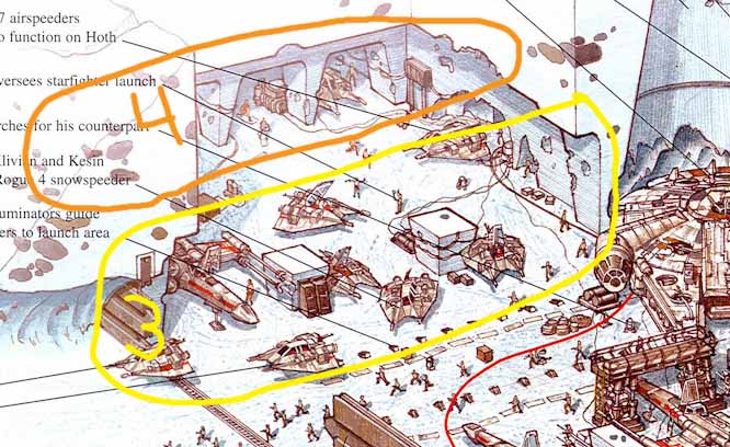 cehnot Posted February 6, 2018 Author Posted February 6, 2018 On February 2, 2018 at 8:18 PM, JangoFett140 said: To clarify are we talking about the back bays (that you have marked blue and red) or the front set? I think the front should be 3 and back 4. Yes this is what I am trying to figure out. I was able to fit 5 bays in there based on the matte painting designs seen in the photo with Han and Chewbacca repairing the Falcon, not based on that cross section. The matte paintings show very narrow hangar bays. This is why I think they could be 5 instead of 4. On February 3, 2018 at 12:55 AM, JangoFett140 said: The part of problem with that wall is that’s where the camera is positioned for a lot of shots in ESB. So we have lots of straight on shots of the Xwing wall but only parts of the Snowspeeder one. EDIT: Been watching ESB at half speed and noticed in the background of this shot that you can see an X-Wing in the last bay on the Snowspeeder side when Luke gets in his speeder. That justifies their original plans. Sorry for the delay. 16 hours ago, dvogon said: Yes, that X-Wing closer to the main door appears in the plans I posted earlier in this page. However, the small hangar bays in the plans contradict what appears in the film, which are big X-Wing sized bays. The scene gives the impression that there are more snowspeeders than those that actually fit in the studios, so in that extent the plans are more accurate to the desired base. Only issue with that plan is you can clearly see their 3 bay design in the film. My guess is that those bays are not the same length as the x-wings. They are much shorter, only the last bay is longer because they decided to cut further into the ice. When you look at the movie stills and see how tight they are in the bays, and then compare the size of them to an x-wing. You can see the bays are shorter by 2 or 3 feet. Quote