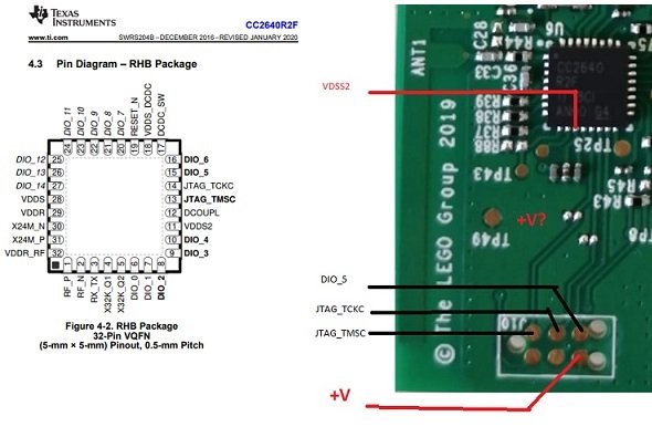 brickvan Posted January 12, 2020 Posted January 12, 2020 On 1/3/2020 at 7:10 PM, ruppie said: The two 3*2 contacts rows in top left, and lower right corner , seem to be the JTAG deg/flash ports of STM and TI microcontroller. Correct, just for the sake of clarity, quite the opposite. Top left - J10 - is for the CC2640R2F, the TI bluetooth controllerhttp://www.ti.com/lit/ds/symlink/cc2640r2f.pdfhttp://www.ti.com/lit/ug/swcu117h/swcu117h.pdf (for JTAG details) I did an attempt to understand it a bit more, see the schema. Hope it helps. I have no idea on the STM32 JTAG connector's pinout (J8). My 2 cents! Quote