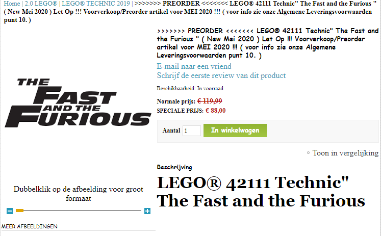 Snorrowitz Posted October 23, 2019 Posted October 23, 2019 found the 42111 on presale. It is named "The fast and the Furious" and comes out in may 2020. Quote