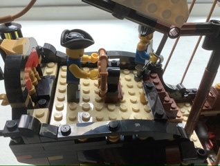 • The captains cabin is the only detailed interior that you get but you can fit a couple of minifigs in there easily (and 3 in a squeeze). Your big-fig human hand though, may struggle.