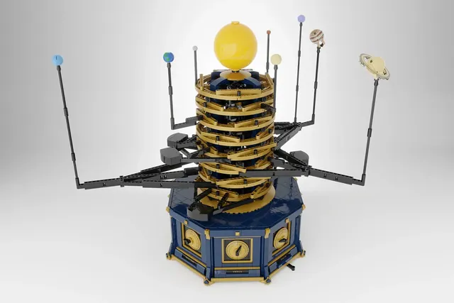 Orcman Posted September 17, 2021 Posted September 17, 2021 I'd like to share our MOC and my experience building it, that I (Chris Orchard) and Brent Waller (yes, that Brent of Lego Ideas sets 21108 Ghostbusters and 21328 Seinfeld fame) have been collaborating on. Background During one of our Covid lock-down skype Brisbricks (our LUG) social nights. Brent was talking about something he would have liked to have made, but found he just couldn't get it to work. He elaborated that it was an geared model of the solar system or orrery (which I had always wanted to try, but never had), and he lacked the Technic know-how to complete, so I offered my help. We decided on dividing the work between the aesthetics and the technical, which worked well. Brent was responsible for the overall idea and look, as well as the base and planets, and I was responsible for the gearing and arms. We each gave feedback on the others work and I found that really helpful I had written a number of Technic articles for BrisBricks to help members get a grip on how to integrate and use Technic in their builds. So I was sure I could make it work, especially as I just had that "A-Ha moment" of using the big ring gear driven internally by smaller gears (that would also keep the ring centered). At first I thought it would be easy as the ring gear is a nice quarter circle, right? That piece turns out to have a little quirk - it is pinched in at the end cross-holes (or bowed out in the middle depending on how you look at it)! Check this video out to see what I mean. This meant that the standard Lego spacing would create far too much friction - it would slow down as the ring "tightened up", then it would speed up as it became looser. This wasn't what I wanted - I needed steady, constant speed. It took me around 90 hours of constant fiddling with various techniques to get a geometry that was slightly under a standard spacing. I found that a distance of less than 0.5mm would be the difference between it reliably turning, and gear slippage. Gearing Getting the gear ratios (planet orbit times) accurate was a key goal of ours. This is a small snippet of the design spreadsheet that I used. The original data is from https://space-facts.com/orbital-periods-planets/ and double checked with various NASA pages. Most solar system transit times are based on earth. Which would mean "gearing up" to make Venus and Mercury turn faster than Earth. I decided to turn that on its head, and base all the transit times on Mercury. So every planet would be "geared down" from Mercury, the idea was to make the movement as smooth as possible. In the spreadsheet this is represented by line 2. In the end every planet was less than 0.15% out, most being less than 0.09% It's really the introduction of the new 28 tooth gear that really enabled me to get the desired accuracy. Having a 7 in the ratios really helped. In the end I wrote a quick Perl program to help sift through the gear combinations. That program could handle up searches to 5 gears deep Early proof of concept video The physical model was created first, to ensure that it all fit correctly. The digital model was then created from that physical Moc. The planets are driven by a single M motor and turns Mercury at about 2s an orbit. We should have a video of that soon. Unfortunately for the physical model, I lacked the exact parts to make the planets just like the digital design, so an approximation of size and weight was used. Compromises Our goal was to create as accurate version of the planet's timings as possible, while still looking like attractive, but certain things had to be dropped. By introducing another ring, I did get a Moon to orbit Earth too as a prototype, but it was unwieldy and really threw the aesthetics out, so it was dropped. Pluto didn't make it, sorry. Although adding a ninth face in the base would be easy (as would adding another ring), constructing a nice looking, strong nonagon(?) on the base top just wasn't possible. MOC Stats: 2996 pieces 153 gears 15 months of collaboration 8 major revisions 2 completely different designs 3 gearing spreadsheets 1 custom written program to help work out the closest gear ratios Overall I am proud of what Brent and I have created, and we hope you like it too. More details, videos and images at our Lego Ideas Page. Quote