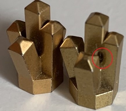 principalbricks Posted October 2, 2022 Posted October 2, 2022 I noticed some of my Rock Crystals have a hole on one side and a dent on the other side. (Photos attached) This occurs only on metallic gold pieces. I also saw on Brickset a photo of the metallic silver which has the same defect. Is this a known issue with the older molds, or has counterfeit parts taken over since the metallic gold has been discontinued by LEGO? Anyone have a straight out-of-the-box piece with this defect? Thanks Quote