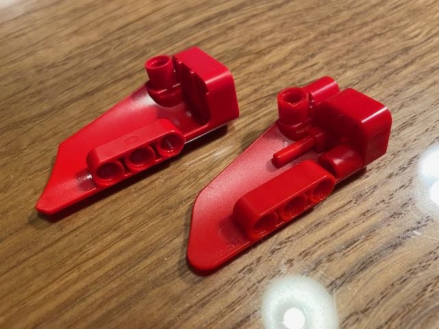 blbills Posted February 21, 2023 Posted February 21, 2023 28 minutes ago, Seph78 said: The problem is probably because of the differences between Cada (right) and Lego (left) Parts. The Cada part has an additional pinhole which takes to much space for T Lego's fix. Bingo!!! The second I removed these parts (labeled R5 and L6) @T Lego's fix worked like a charm. I guess now the question is to either replace these with TLG parts or try to come up with a separate fix using the CADA parts that addresses the original need of the rear hatch not closing fully... It seem like either way this is something I can address after the build is complete. I'm tempted to move on for now. Let me know if anyone else solves this in a creative way. Thanks! Quote