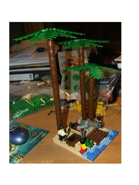snefroe Posted November 3, 2005 Posted November 3, 2005 hm... my custom cannon didn't go anywhere, my real lego cannon did. anyway, not so very patient pirate, i've made a small moc with the custom cannon. the pic isn't brilliant, but here it is: i especially like the trees :oD i've always thought that the lego palm trees were nice but not really in scale with the minifigs. I mean, many of these tropical trees are huuuuuuge. so i thought, let's see if we can come up with an alternative... Quote