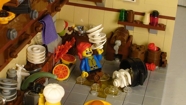 Ratshot Posted March 29, 2009 Posted March 29, 2009 Man, kitchens seem to be a popular entry these days. WHAT LOOKS BEST 1. I love the big stacks of plates. They look very real 2. The soup on the floor looks nice. 3. I really like the oven, but it doesn't look like an oven for cooking pizza's to me, but it looks nice. 4. The counters and barrels and such, they look very realistic. 5. The Burgers . I love Burger King 6. The rat eating the chicken, I did something similar in my entry. WHAT COULD USE SOME IMPROVEMENTS 1. The chefs assistants clothes don't really fit the part, but that is up to you. 2. The burgers and the pizza don't really fit the time period, but it is understandable do to the fact that Lego doesn't have a big menu 3. Maybe you could tile the top of the shelves for added realism. 4. That big red stripe sticks out to much, I would remove it if I were you. 5. Having gray walls reminds me of a ship out of the WW2 era to much, I would make it brown. Overall this is an awesome entry, good luck Quote