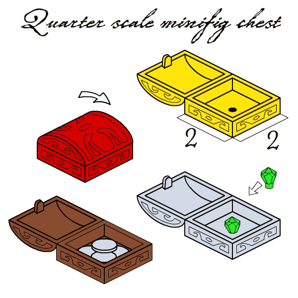 David Thomsen Posted August 30, 2009 Posted August 30, 2009 (edited) Small-scale treasure chest. I haven't got the proportions quite right, so it looks like the bottom would be flat, but it should have a standard 2x2 lego base. Minifigs need to be able to hold it. The hole in the centre is a little touch I thought of. Jewels could be inset in the middle, making them look more valuable, like an engagement ring in a jewellery box rather than just loose. p.s. I know I should have just added this picture to my original post, but I went to quite a bit of trouble to draw it... I wanted to make sure it got seen. Edited August 30, 2009 by David Thomsen Quote
