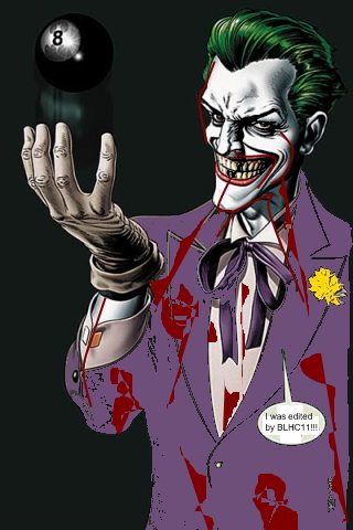 blhc11 Posted June 27, 2010 Posted June 27, 2010 And boom, I just finished editing a pic of the joker, so it looks like he's covered in blood, you'll also note that I authenticated it... sorta, here ya go: I hope it's to your liking, and that you aren't picky when you decide to finaly make it. Quote