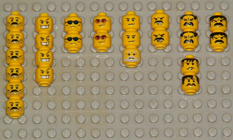 Hobbes Posted January 14, 2006 Posted January 14, 2006 Since I can't tolerate non-smiling, depressed or maniacal MFs in my city I'm looking to trade the respective MF heads: (Thumb clickable for 800x480 pic) It's 25 heads in excellent condition. They're mostly from brand new sets. From left to right: 6x Construction worker 4x Crook 2x "Agent", from 4511 train (I should have a third but I can't find it. Maybe he's been lynched by the others, dunno. See why I want to get rid of them?) 2x Pilot 3x Police Officer 8x Western, Bandits and Cowboys I'm looking for the classic smilie head: :) If there's a "face" on it I'll take it, too, as long as it's definitely smiling ;) I'm looking to trade for all of them at once, please don't ask for single heads. That's just too much work shipping single heads. I'm looking to trade, not sell. I'd like one smilie head for one "facey" head. That's if your heads are in excellent to very good condition, too. If your heads have wear I'm sure we can work something out (I'm not going to ask 2-for-1). I'm shipping world-wide. Since there's not much weight involved shipping shouldn't be a problem. If you pay more for shipping than I do we can work something out. I'm not on the straight shooters list but I've successfully dealt with 2 people from EB before. So, anyone interested, please PM me *satis*