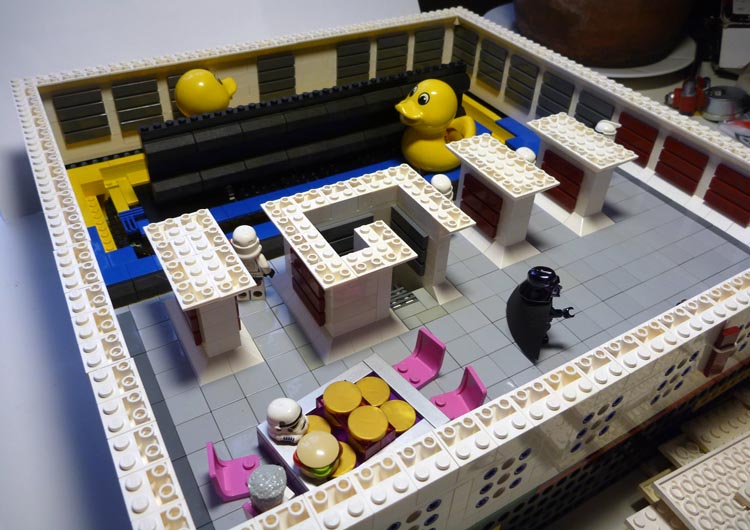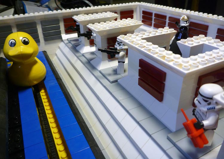 Tobbe Arnesson Posted November 15, 2010 Author Posted November 15, 2010 I've updated the first post with an overview shot. I'll post it here as well: Here's an overview of the whole scene (apart from the green corridor that's below the table and Darth): I hope this answers KielDaMan's question, no trick photography to multiply the size. All built on a 48 x 48 baseplate but the corridor is one level below the rest. Also the ducks "swim" lower than the Stormies stand, having high ground should further help them hit the ducks. I've restarted the upload of the behind the scenes-video which better shows the corridor in relation to the other and also the motorized ducks. Should be done within one hour... Quote
