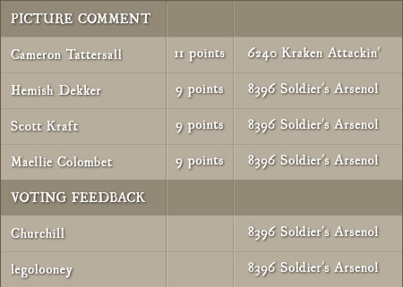 As an added incentive we'll awarding a 8363 Soldier’s Arsenal to the two people who leave the most interesting feedback.
