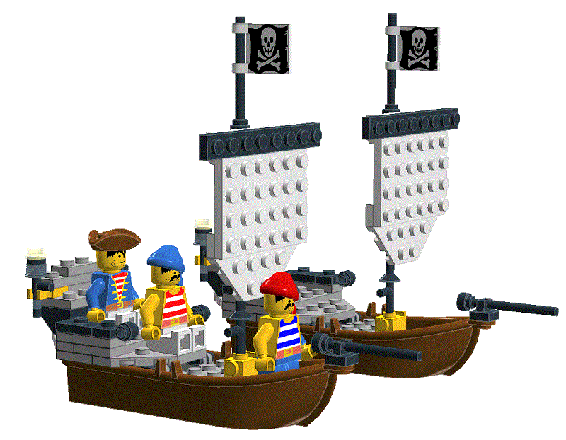 From Book 260-1, pages 40 and 41. I warn you, this model's pretty underwhelming. Includes three pirates.