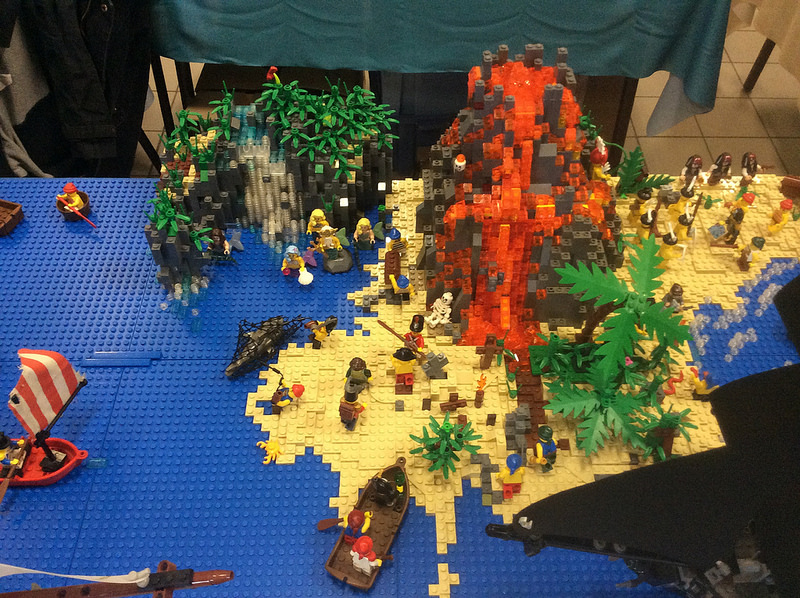 Ah! Nothing like a good diorama! The vulcano is very well done, and I'm really fond of the fort, but it's the huuge pirate ship I like best.