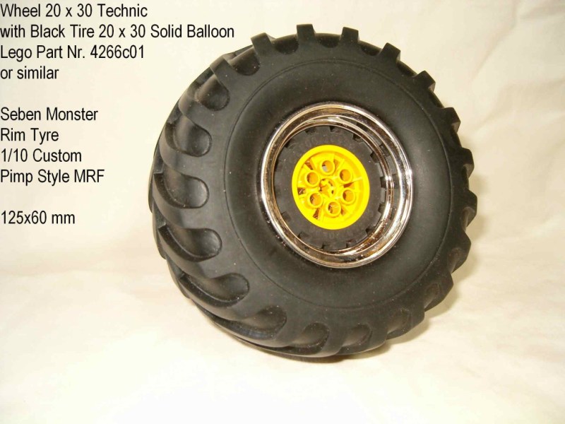 wela Posted May 2, 2014 Posted May 2, 2014 (edited) Wheel 20x30 Technic with Black Tire 20x30 Solid Balloon Lego Part. Nr. 4266c01 pressed into Seben-Racing Monster Rim Tire 1/10 Custom Pimp Style MRF Edited May 2, 2014 by wela Quote