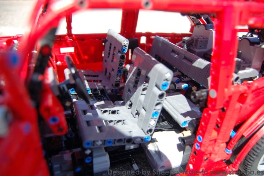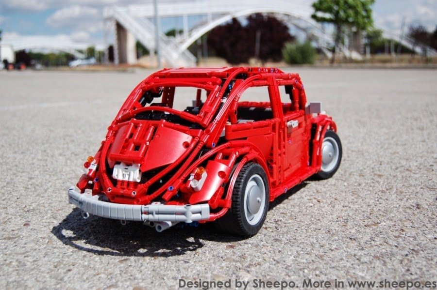 Sheepo Posted May 25, 2014 Posted May 25, 2014 (edited) Here is my lastest car. The classic Volkswagen Beetle, officialy called Type 1, or informally in some places around the world the VW Bug. This car received a lot of modifcations and improvements along the years, I have built the 1967 model. This car is made in scale 1:7.8. The total size is: 65 studs of length, only 25 wide and 23 of high (50x20x18 cm) The weight is 2.5 kgs, with around 3000 parts and 5 motors. As always it includes some remote controlled functions: - Steering (M motor) - Drive (2 XL motors) - Sequential gearbox (PF Servo motor) - Brakes (M motor) The sequential gearbox is a modified version of the Mustang's gearbox (3rd Gen V2), with 4+N+R speeds and as always with auto-clutch. The speeds ratio: R - 1.25:1 1 - 1.25:1 2 - 1:1 3 - 1:1.33 4 - 1:1.67 The max speed in 4th speed is 4 kph (~2.5 mph) It has a gear indicator in the interior, between the front seats. Boxer-4 fake engine under the rear bonnet. The bodywork Also you can disassembly the bodywork removing only 5 pins, do it is very easy and fast. A complete bodywork with openable doors, front trunk bonnet and and rear engine door. Also the doors have lock, you need turn the door handle to open it. It has 4 full size seats and folding front seats. The suspension is based in the real one: front rigid beam independent suspension axle and rear swing axle. Also the front axle has stabilizer bar. The steering has ackerman geometry and working steering wheel. The car also has working brakes in all wheels: disc brakes in the fron and drum brakes in the rear. In addition it includes functional brake pedal. Now the "most wanted" picture for technic fans. Like the Mustang the instructions will be available coming soon Finally as always a little video: As always for more info visit my website: sheepo.es Edited May 25, 2014 by Sheepo Quote