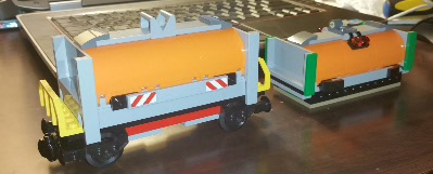 this is the other style of car, sort of a tanker car. this one is a complicated build, and is pretty fragile. but you have the parts This one still needs a little more work but the car looks pretty nice I think.