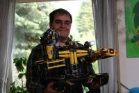 Noooo!.... why they let me write and then tell me something is going wrong and i cannot reply... a text lost *lol* Sorry. so i do again: first Thank you! the gun looks awesome! I like to have one! And about the questions: -I have no fear stay in one room with the "terminator" he's usual very friendly *lol* -Springs are not strong enough for our kind of weapons, we need really a lot of power, so we have to use strong rubber bands and string mechanism, primary like a crossbow or bow, that works good. And we use strong connected lego lift arms as bullets, they have enough mass to destroy something ;) -And thank you a lot for all of your feedback, i hope all of you take a look at kickstarted if we start in 2,5 weeks. And if you like i can send over flyers and posters. We still have some. But I can not send 1000 of, i have to concentrate to people i can send more of them, and they separate them and give them to friends etc. Somebody like to have one? ^^ maybe I should login before I start writing next time *lol* -
