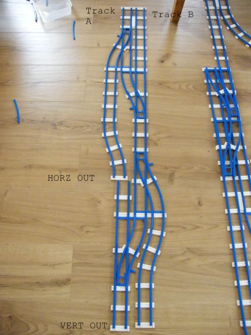 I think I'll give that one a shot tomorrow, ease it in and then nothing too drastic after that (i.e. 2 plates per track length). Straight and then straight and on a curve sounds like a plan :-) The blue track has groves all right, but I thought the rubber "tyre" of the wheel might work better on a smooth track. I need some instuments to measure all this traction, friction and momentum! Where's my old school physics book when I need it... ;-)