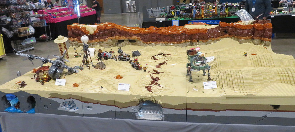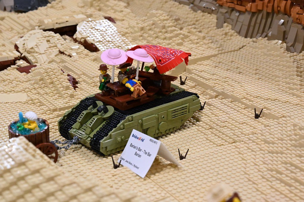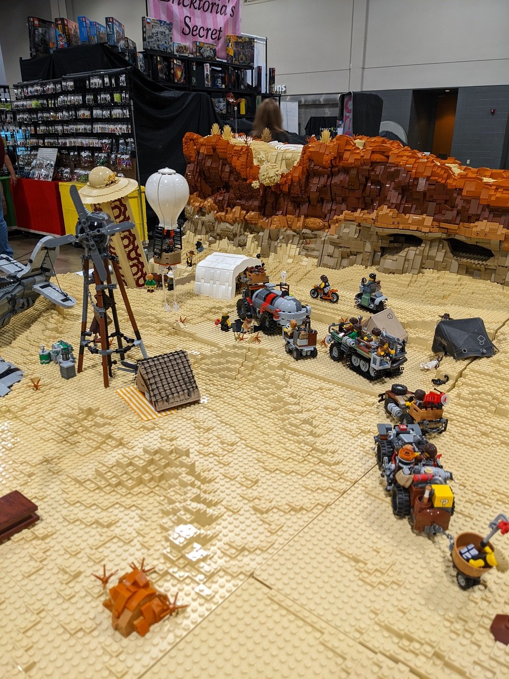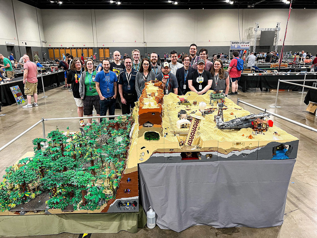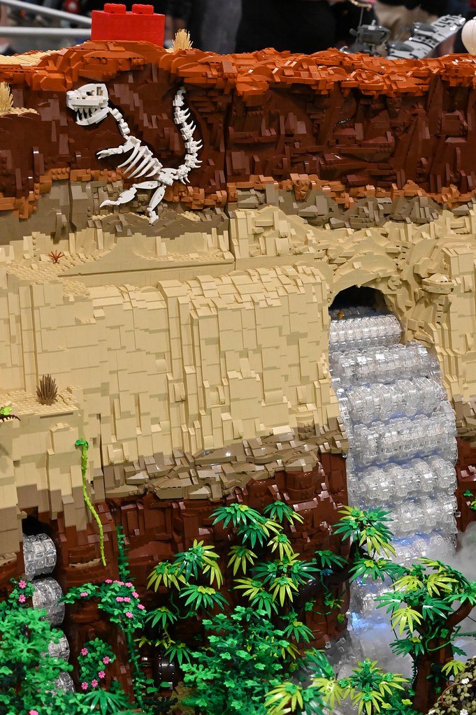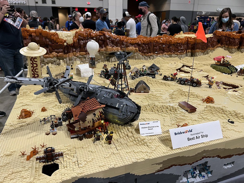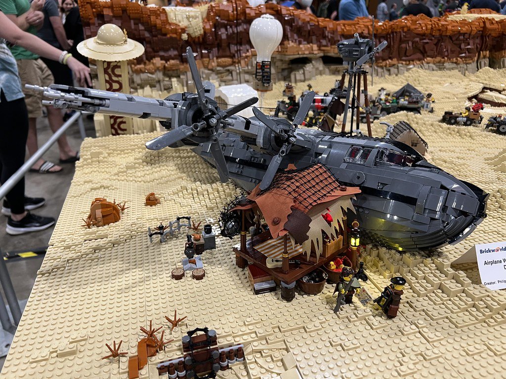 The Oasis Each year, a dedicated group of Eurobricks members assemble in Schaumburg, Illinois, at the annual Lego convention--Brickworld Chicago--to construct one large and crazy collaborative display. This was the result: The Eurobricks collaborative display for Brickworld Chicago 2022 was the Oasis. A sprawling adventure across deserts and jungles, the Oasis display attempted to replicate that exciting feeling of discovery. Utilizing sightlines and some clever (if perhaps intense) planning, the harsh desert and lush jungle were hidden not only from each other, but from the viewer too. Upon approaching the display, the viewer was greeted only by the endless desert and the tenacious adventurers traversing it. But like the adventures, as the viewer explored further and walked around the display, a massive jungle would appear and a new epic would begin. And just as the explorers would ask themselves upon seeing the ruined temples of the jungle, you too are probably pondering, who built this?! Well Eurobricks that's who! From Jungle to Desert: @Darkdragon @Cecilie @KotZ @Quarryman @Hinckley @RoxYourBlox @Kristel @MKJoshA @ZCerberus @Rogue Angel @Cheesey @Silver.Smith @Captain Nemo @Peppermint_M @Evensong Not Pictured: @Ryushi @Prune Face @Vincent Kessels The Oasis was built by 18 Eurobricks members over the course of three years! Yes, read that right, three years! Our dedicated Eurobricks collab family has been working on this display since Brickworld Chicago 2019 and one short apocalypse later, we were finally able to come together at Brickworld 2020 2021 2022 to display it as we always intended. Spread across four tables, spanning 10 feet by 8 feet, with a height difference/drop of around 4 feet, this was our most ambitious and intensive display yet. Utilizing hundreds of thousands of pieces and just as much blood, sweat, and excess jungle water, this display was finally assembled together at Brickworld after a three day setup process. After which it was promptly destroyed. The Desert While the display itself is massive, the entire collaboration is comprised of smaller segments built by all of our teammates. Just like the spectators would see in person, let's start with a closer look at the Desert side: While on paper a desert might seem like a bit of a bland build concept, in reality it is anything but! Covering 8x5 feet, this desert features massive dunes, insurmountable cliffs, downed planes, and even a mobile tavern. Also, this was built with all of the tan plates in the world. With such a large barren landscape, what's the best way to cross it? A plane of course! Built by @Silver.Smith & @Evensong (Phil & Maria), this downed cargo plane now acts as a makeshift home for explorers. Deceptively massive, this wreckage now features a campsite, a shanty shack of fabric pieces, and even a functioning windmill created with one of the plane's propellers. Phil & Maria also built sections of the jungle that we will see later, but their plane was nominated for Best Airship. Additionally they received nominations for Best Small Group Display, Best Group Train, Best Land Vehicle, and Best Mecha In addition to building the downed plane, Phil & Maria built the desert section below it--which included a previously hidden cave filled with crystal blue water. This area is now being explored with some most-likely-not-up-to-code wooden walkways. A plane is a more traditional way to travel, but if you have the money and want something with style, perhaps try this steampunk walker built by @Quarryman / Jens. Utilizing some nice large transparent domes and lax child labor laws, this Wild Wild West styled walker makes exploration a breeze. This build was nominated for Best Mecha. If you don't mind the heat or slumming it with plebs, you could also try the cheaper option of an old tank turned tavern turned bathhouse? Whatever this is, Jens' equally impressive tank certainly added some stylish (hats) flair to the desert. That tank is all the more impressive when you realize it traversed the massive dunes built by @RoxYourBlox / Pete. Elsewhere at Chicago, Pete's builds won Best Mechanical, Best Humor, Best Group Display, and was nominated for Best Creature and Best Large Building. While dunes are difficult to cross (and even more annoying to build!) having to watch out for holes that fall into a river is also a bit of a challenge. Built by @Captain Nemo / Tim, the cracked earth on the desert side shows hints of the adventure to come. Beneath the earth is a five foot long, partially mechanized, underground river that flows from the edge of the desert through to the jungle and beyond. The desert holds more secrets than a river though, as adventurers are uncovering hidden temples by the base of the cliffs. Built by @MKJoshA / Josh, this expedition force is digging out a large tower, which features a hidden chamber beneath the ground. Desert vehicles were created by @Peppermint_M / Christie, who also built an Ice Cream Shoppe for the Eurobricks Gingerbread train layout, which was nominated for Best Train Layout. Below you can see various hidden details such as geodes, dragon skulls and skeletons embedded into the cliffs and ground, all built by Josh. And of course we need to talk about the cliff work, which is rather difficult to breakdown into segments, as they miraculously lined up rather well on site! The desert cliffs (both the desert facing side, and their jungle facing backside) were built by (from plane/left to dune/right) Josh, @Rogue Angel / Kevin, Tim, and @Cheesey / Caleb. In large part the quality of the cliffs is due to Caleb, as he first constructed his cliff sections in 2019, and created the style template that the rest of us matched. Caleb also built a segment for the jungle and numerous other builds for Chicago, taking home the win for Best Small Building, Best Group Layout, Best Dirty Buildster, and the nomination for Best Medieval. Caleb also created a spectacular video detailing this collaborati