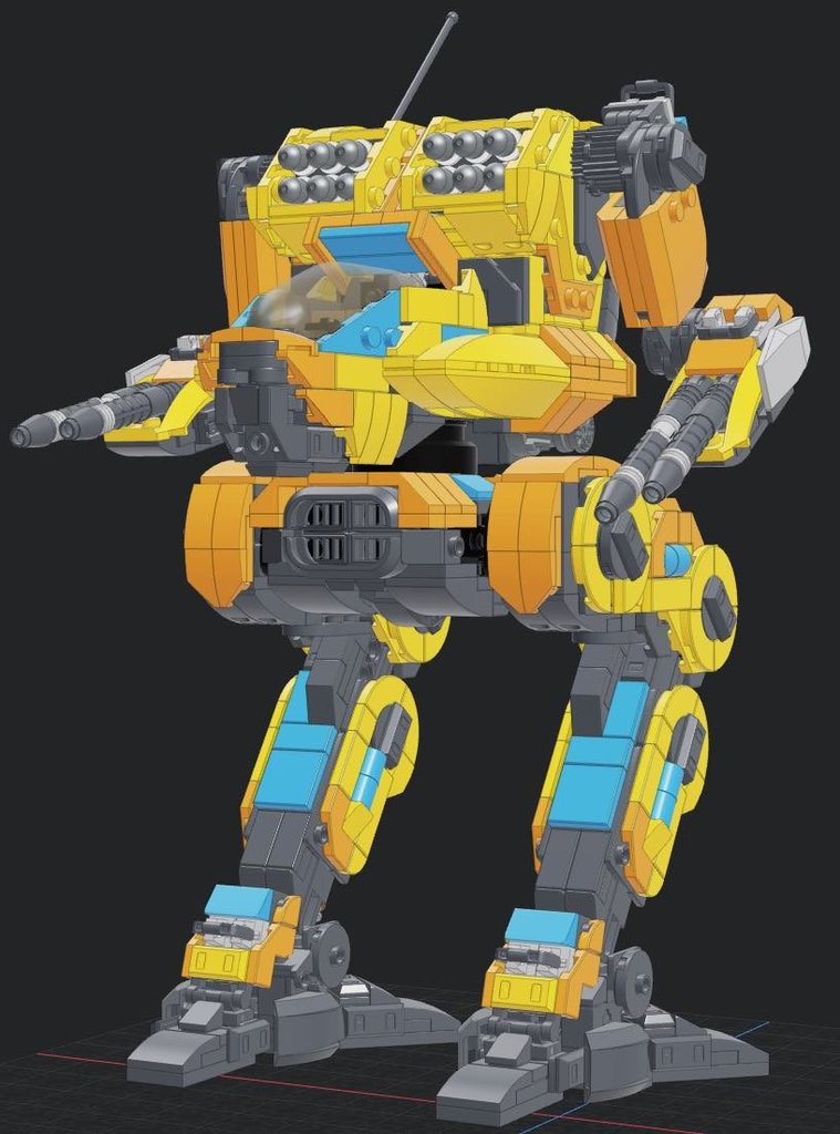 Love your stuff! Inspired me to reconnect with my Battletech table top days, and inspired me to build modern MechWarrior & HBS Battletech version of the Ryoken. Here is a mecabricks screen shot. I borrowed a few elements such as the MLs from your Ryoken build, scaled down some of the LRMs from your King Crab, and the pelvis from your Uziel (thank you). I have this built in the 'real' but need to setup a little studio to take some decent shots...soon I hope. Stands up on its own and is possible. Scaled around the canopy piece and SRM 6s...fits a mini fig pilot. If anyone has some tips on best way to pull some instructions togther I would love to learn the process and get this one out to the community. -