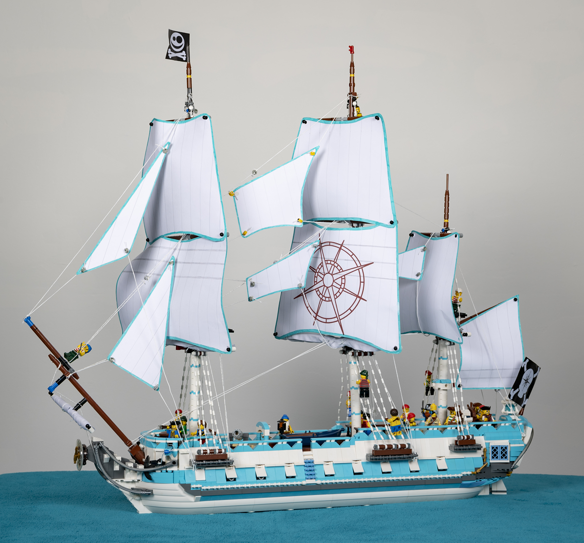 Professor Thaum has emerged from his lab with a pirate ship, the Magnetic North! Take a closer look at his debut MOC, a frigate with a unique colour scheme and custom sails.