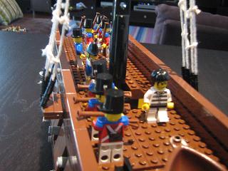 I'm making a ship like this using slopes, it has 52 cannons, 2 decks and crew of 20. But my colour scheme is an early British ship it uses black and brown. I hope this warship ends up looking like you imagined it to be. My ship the HMS Sirius is still a WIP but still is very big.btw how many midsections do you plan to use?