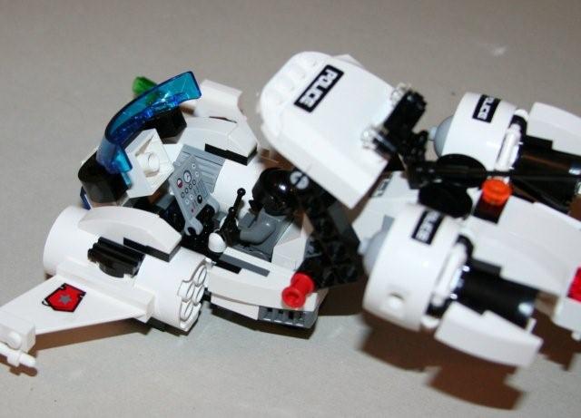 Hi everyone - first time posting on Eurobrick. First off, thanks to everyone who posted comments and reviews of the new Space Police "Gold Heist" set - it inspired me to buy the set and make changes. I really like the Police vehicle as it reminds me of something anime. But I did not like the cargo holding tail section, lack of side armor or the interior cockpit. And so I changed it - I thought it should look more like a futuristic airship. I used technic pins with connectors on them to attach the side armor.